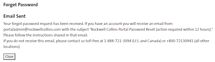 Password Reset / Forgot Password - Heritage Rockwell Collins