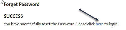 Once the new password is set, click the indicated link to proceed to sign in.